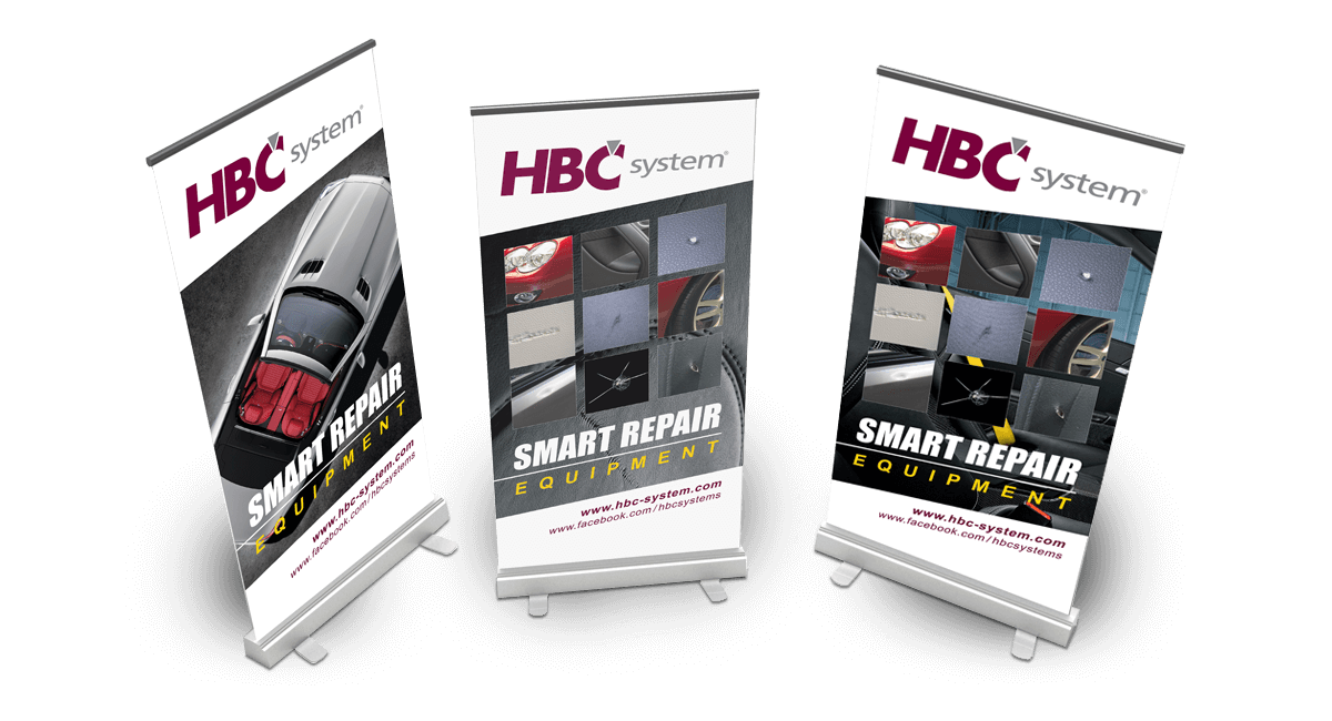 We will do our outmost to support you in building a successful business in your market, providing you with not only the latest equipment and consumables but bespoke literature, country product catalogues and training manuals. As well as return on investment workshop modelling and exclusive access to our support website.We have an extensive range of banners, roll-ups, catalogues, flyers and POS merchandising which are all produced in-house at HBC System and so we can offer either HBC branded solutions or own-label. All literature is available in national languages once translations are supplied.