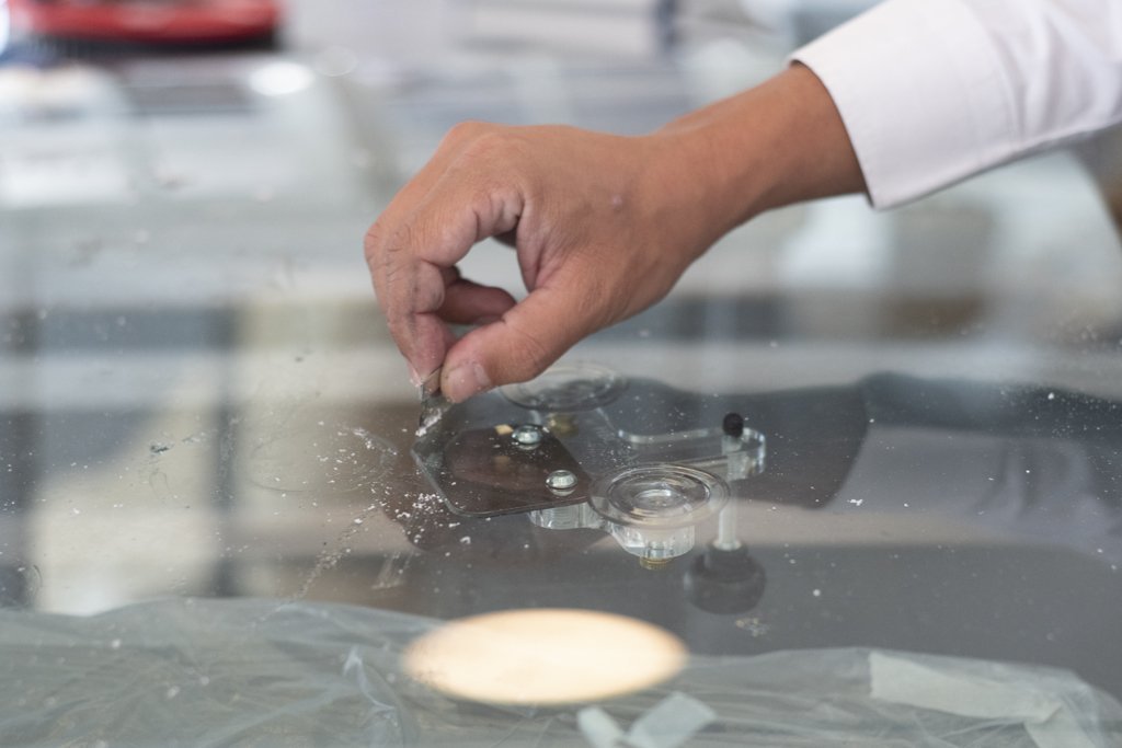 Razorblades is used for removing excess resin on the windscreen.